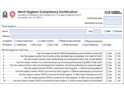 Hand hygiene competency certification. This certificate serves as official documentation that the individual named herein has successfully completed a hand hygiene competency assessment in accordance with the World Health Organization (WHO) Guidelines on Hand Hygiene in Health Care and the U.S. Centers for Disease Control and Prevention (CDC) Hand Hygiene Recommendations. The assessment confirms that the individual has demonstrated adequate knowledge and proficiency in hand hygiene practices critical for infection prevention in clinical, laboratory, and healthcare settings. Certification is valid for a period of one year from the date of assessment, after which re-evaluation is required to ensure continued compliance with institutional and international standards.